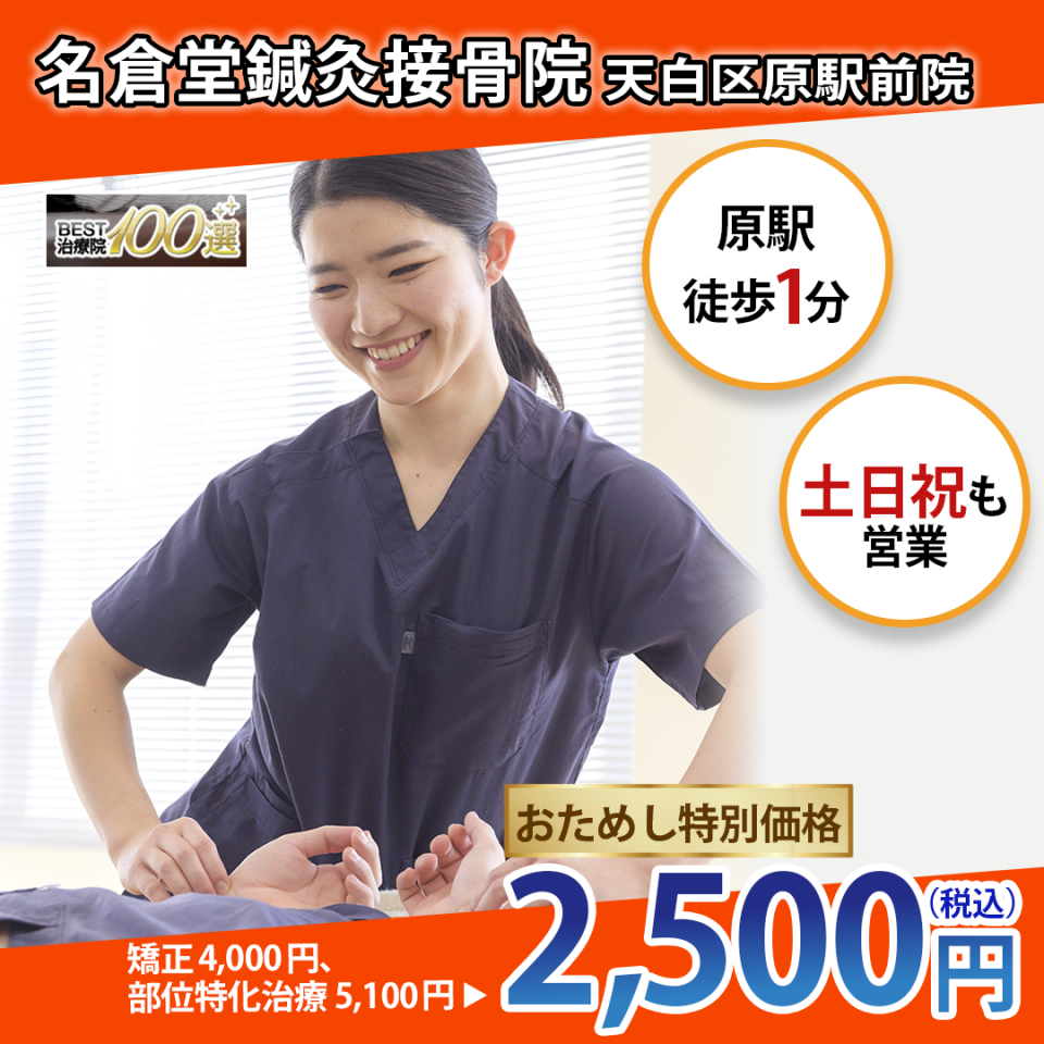 名倉堂鍼灸接骨院 天白区原駅前院でございます。